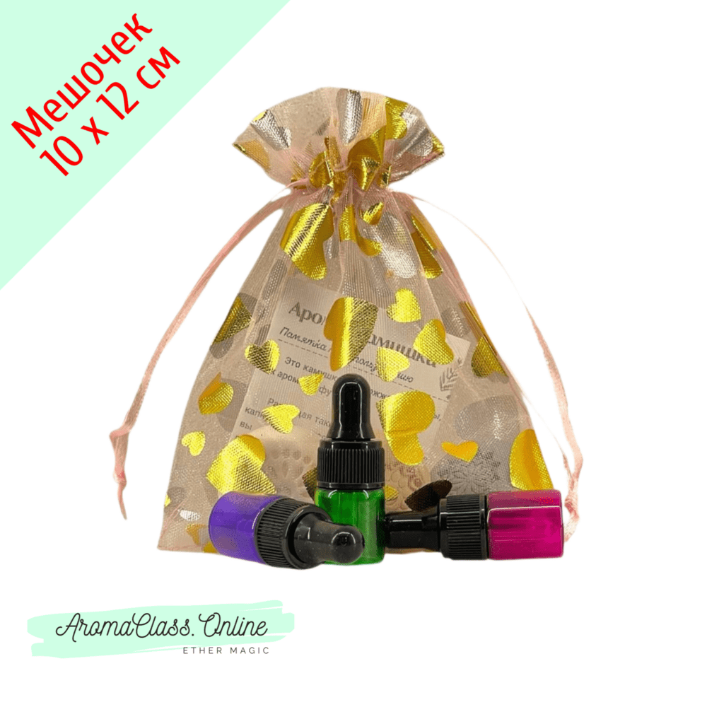 Мешочек подарочный, 10 х 12 см., «Сердечки», для флаконов 5-15мл., розовый с золотом, органза