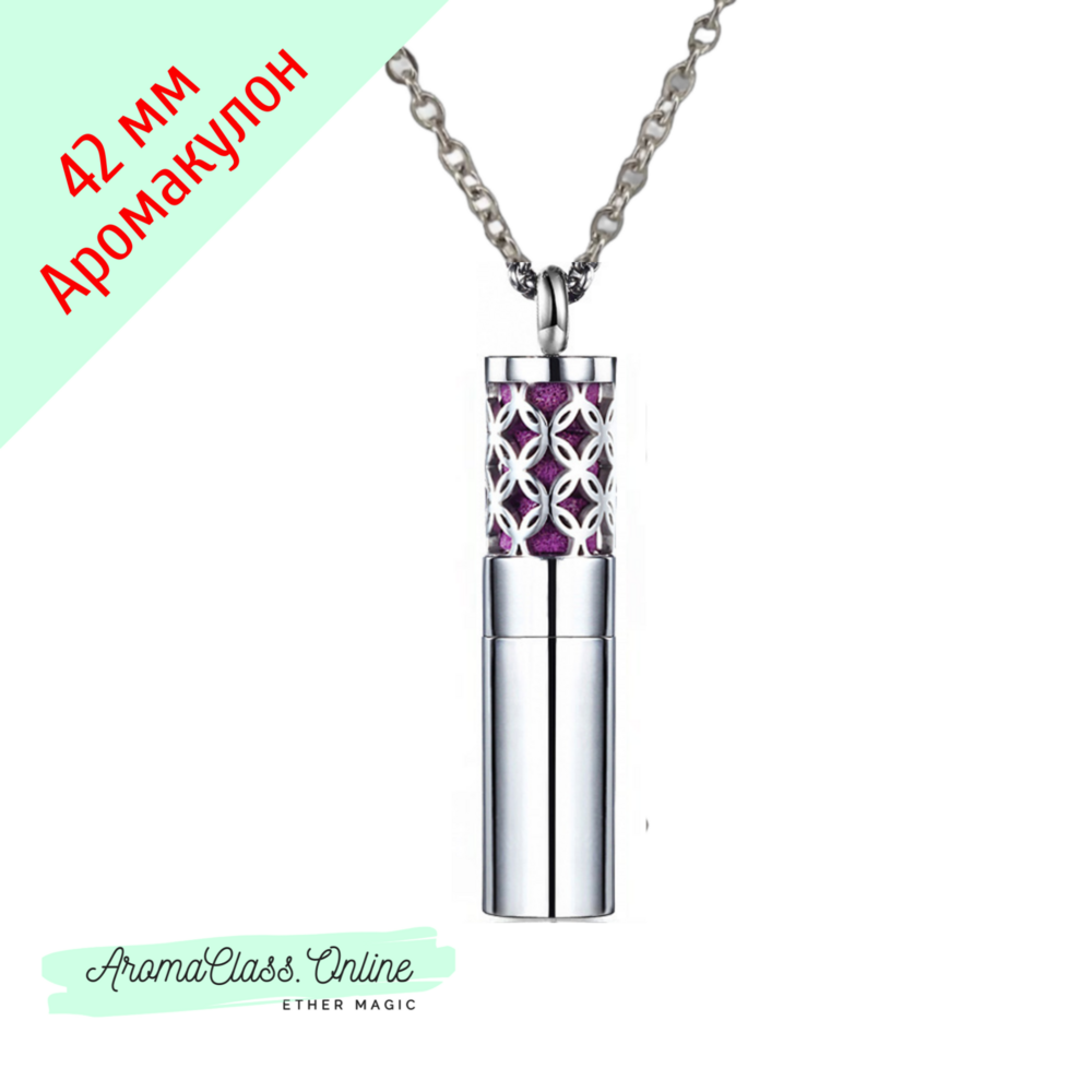 Аромакулон цилиндрический, 42мм, нержавеющая титановая сталь 316L + 6 фетровых вкладыша (цепочка в комплект не входит) Вариант 2