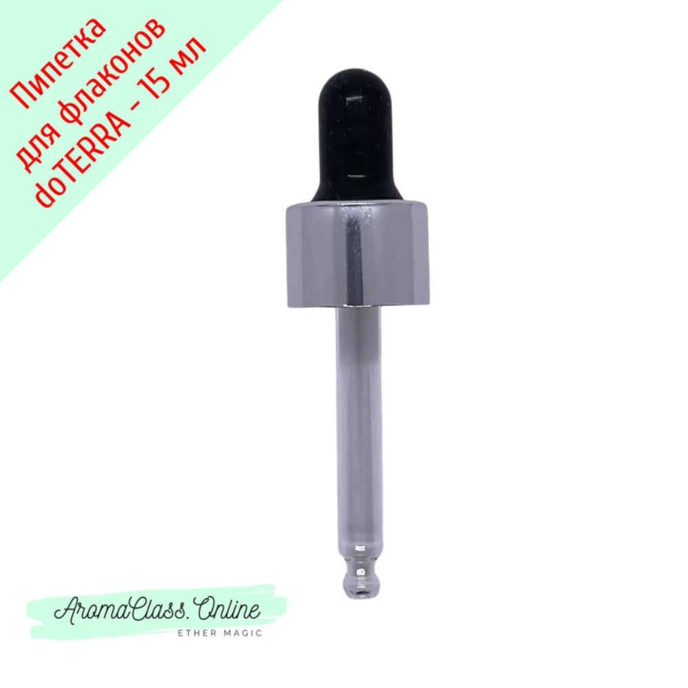 Насадка - пипетка для флаконов 15мл, doTERRA, серебристая крышка, черная груша