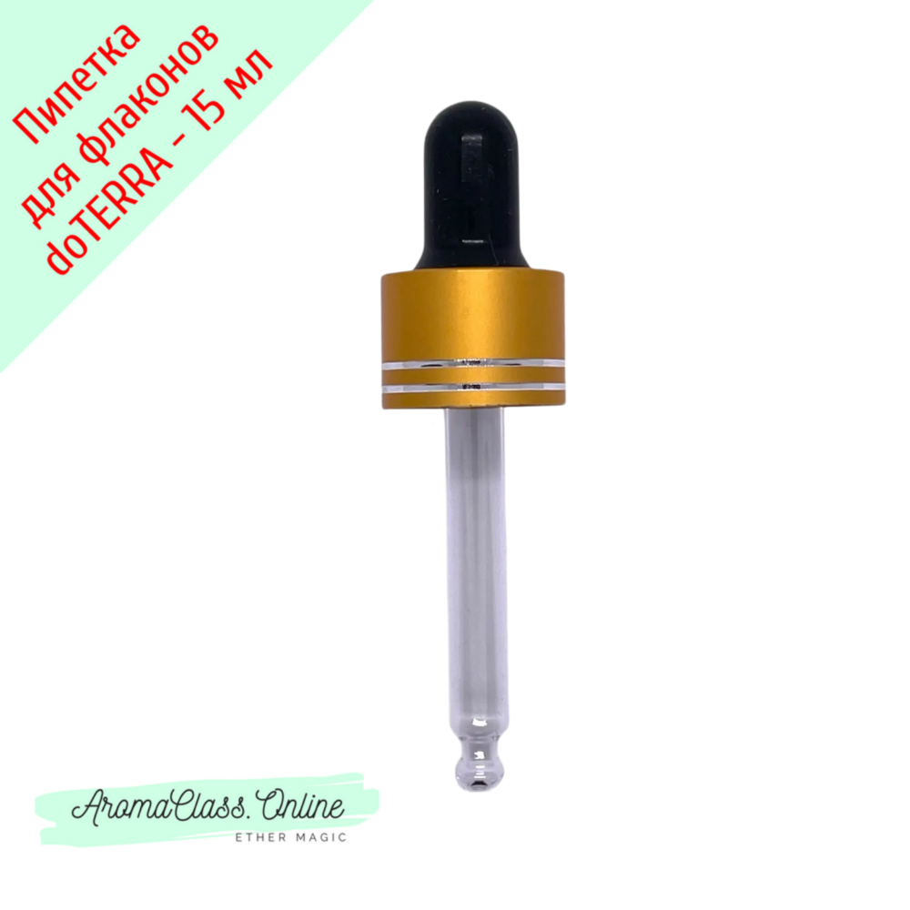 Насадка - пипетка для флаконов 15мл, doTERRA, золотистая с полосками крышка, черная груша