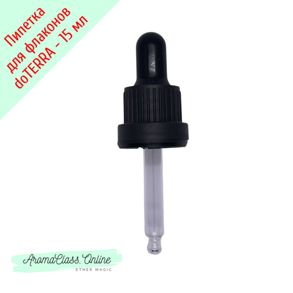 Насадка - пипетка для флаконов 15мл, doTERRA, рифленая с КПВ крышка, черная груша