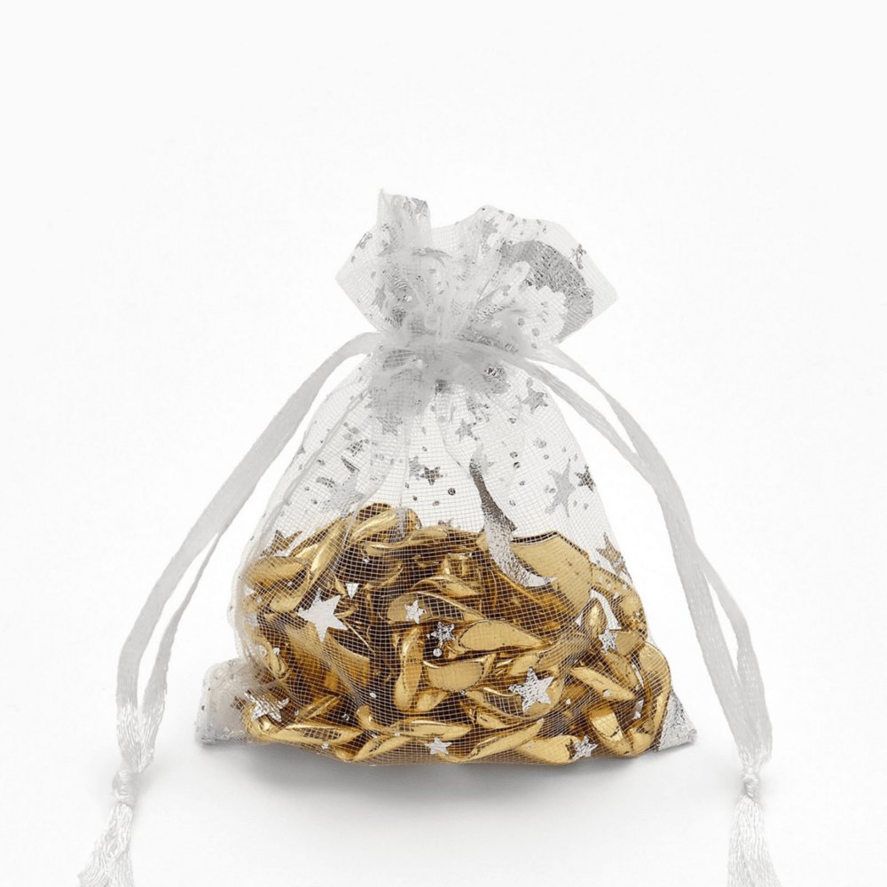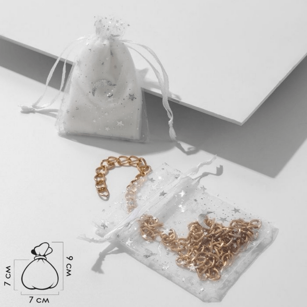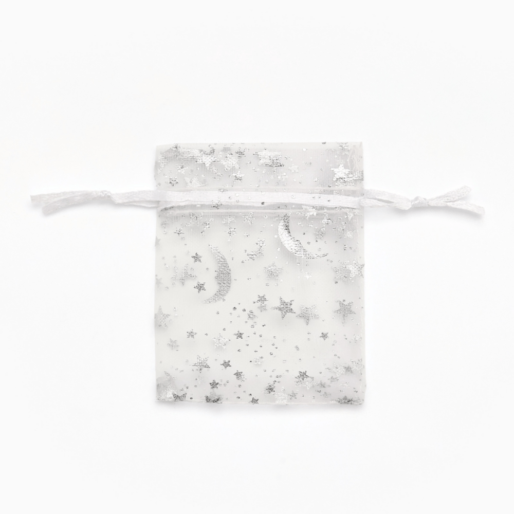 Мешочек подарочный, 7×9 см, «Звёзды с месяцем», белый с серебром, материал органза