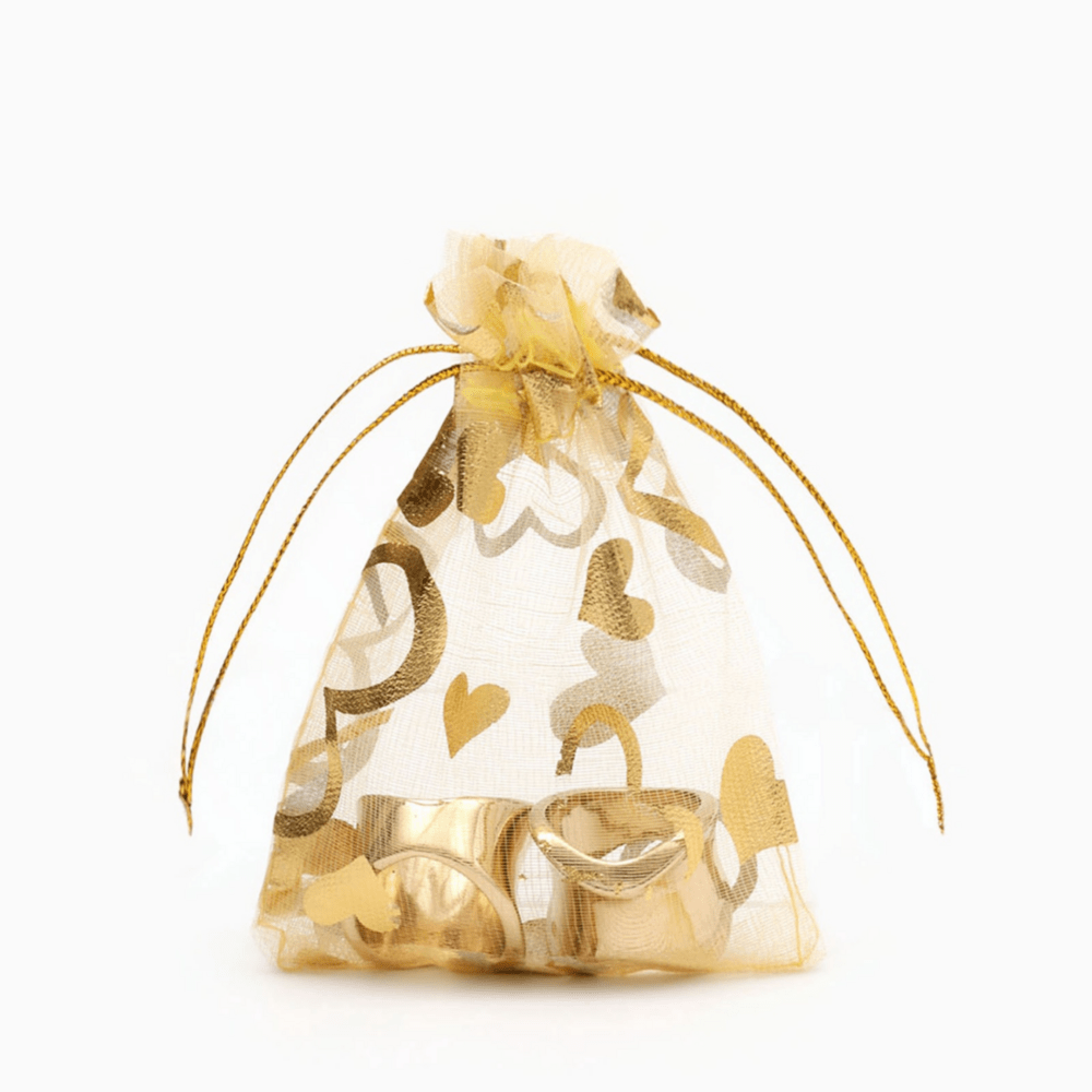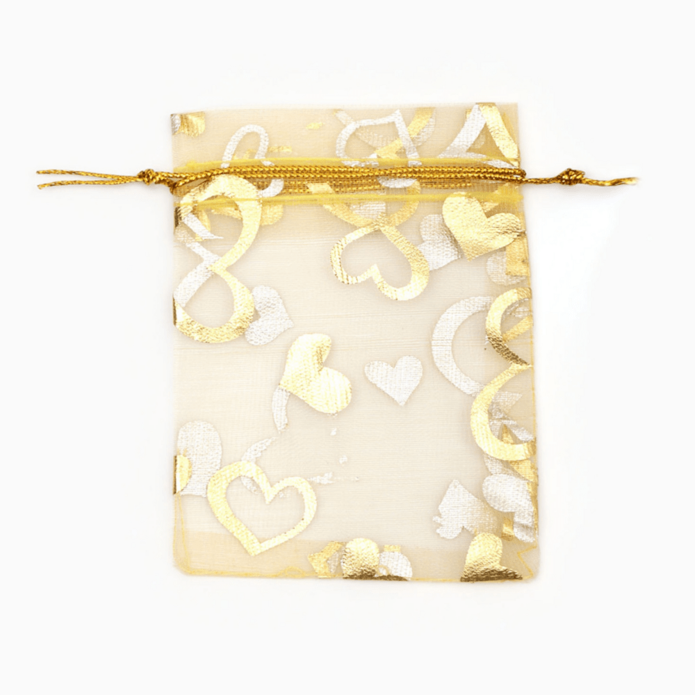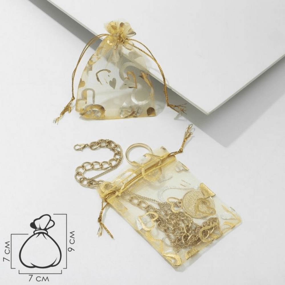 Мешочек подарочный СЕРДЕЧКИ 7х9 см для пробников 1-5 мл цвет золотой материал органза