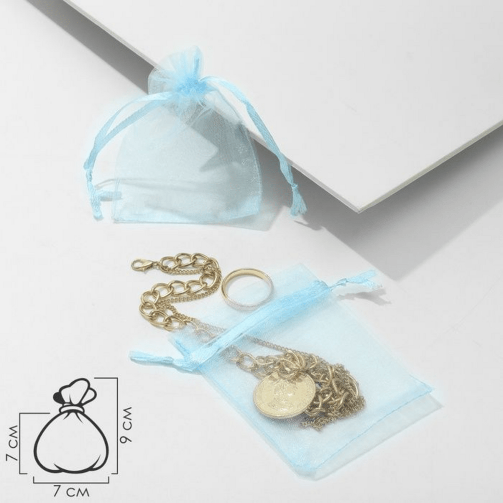 Мешочек подарочный 7х9 см для пробников 1-5 мл цвет голубой материал органза